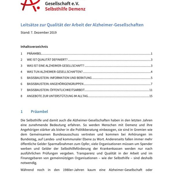 Leitsätze zur Qualität der Arbeit der Alzheimer-Gesellschaften